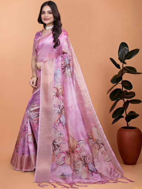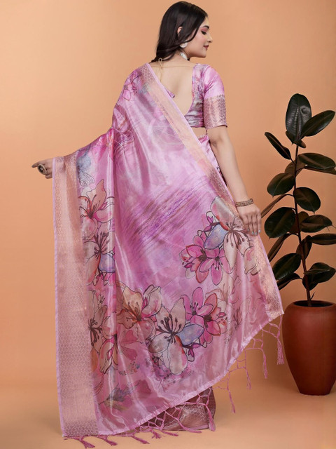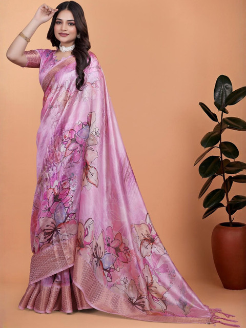Mameraa Floral Printed Saree With Blouse Piece