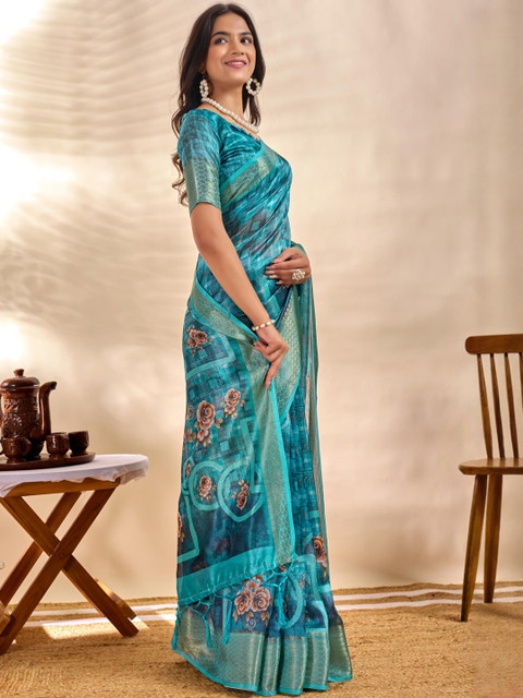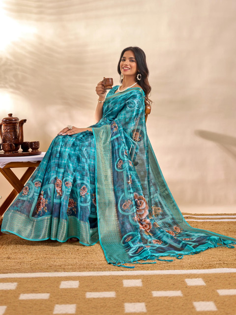 Be the first to review “Mameraa Floral Printed Woven Design Zari Saree”
