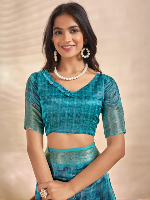 The blouse worn by the model might be for modelling purpose only. Check the image of the blouse piece to understand how the actual blouse piece looks like.