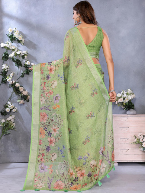 Mameraa Floral Printed Zari Saree