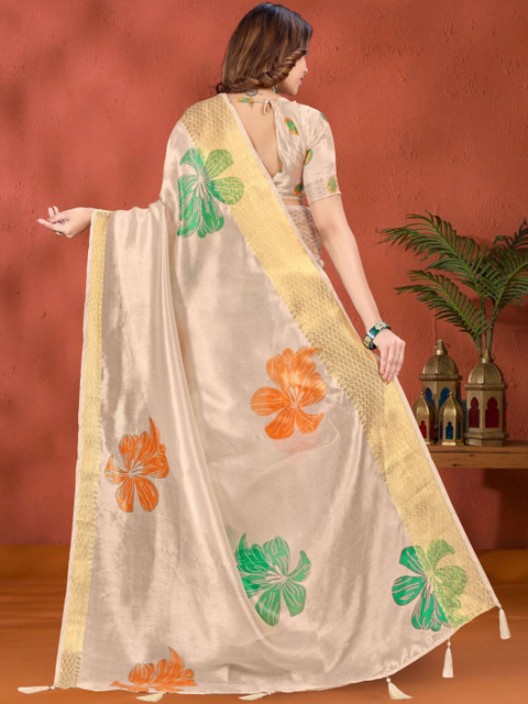 Mameraa Floral Printed Zari Saree With Blouse Piece