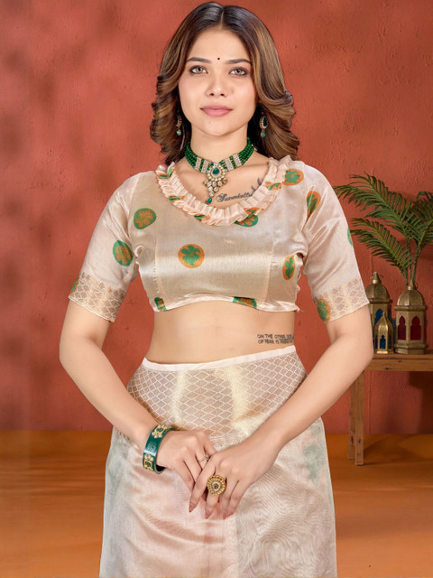 The saree comes with an unstitched blouse piece