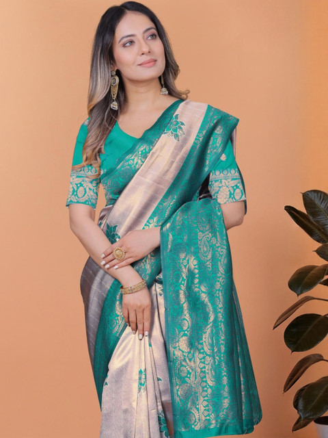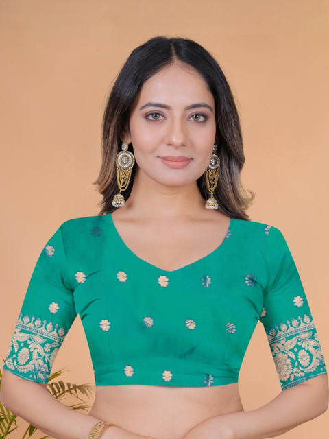The blouse worn by the model might be for modelling purpose only. Check the image of the blouse piece to understand how the actual blouse piece looks like.