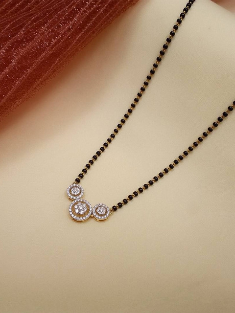 Mameraa Gold-Plated Cubic Zirconia Studded And Beaded Circular Mangalsutra