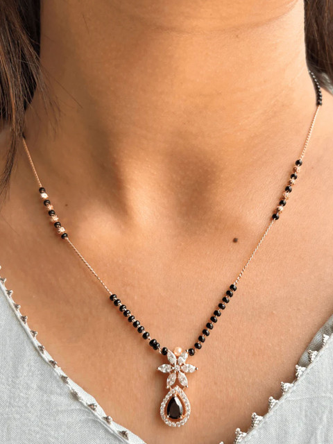 Mameraa Rose Gold-Plated CZ Studded And Beaded Floral Mangalsutra