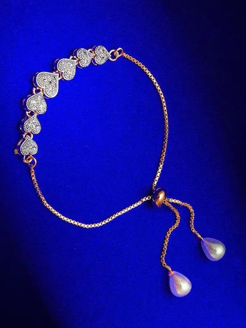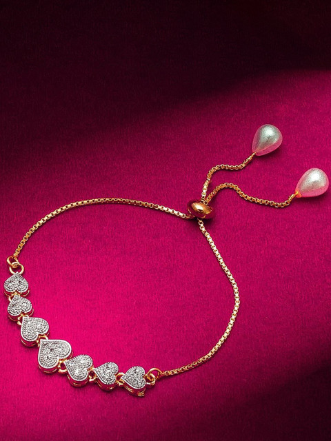 Mameraa Gold-Plated Sparkling Heart Cubic Zirconia Studded Link Bracelet