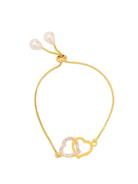 Mameraa Gold-Plated Interlocking Hearts Cubic Zirconia Studded Link Bracelet