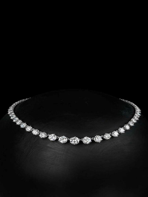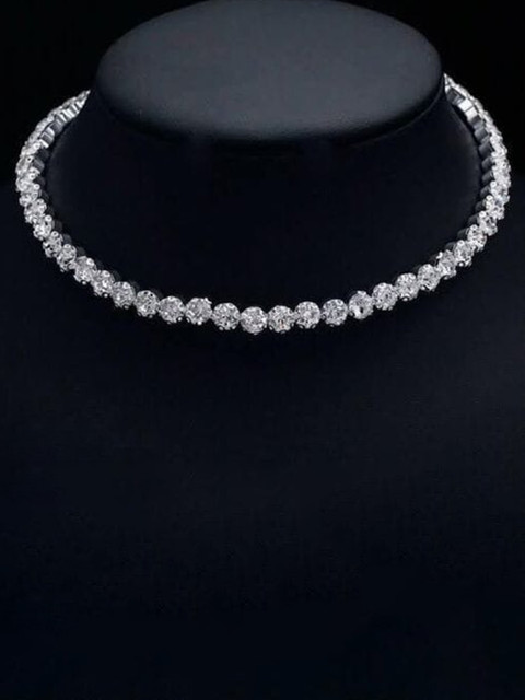 Mameraa Silver-Toned & White AD Handcrafted Rhodium Choker Necklace