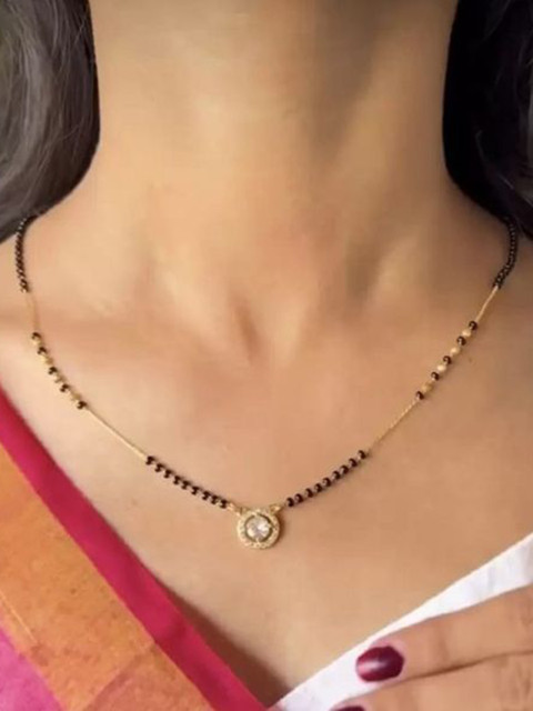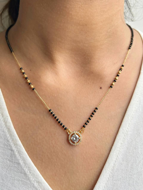 Mameraa Gold-Plated Artificial Stones and Beads Mangalsutra