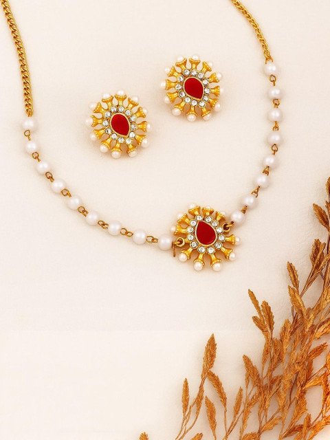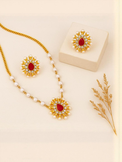 Mameraa Gold-Plated Stone-Studded Mangalsutra With Earrings