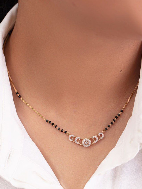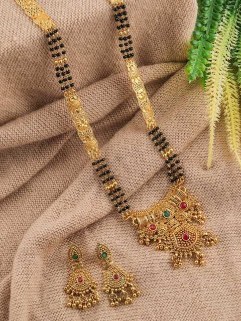 Mameraa Gold-Plated Artificial Stones and Beads Mangalsutra