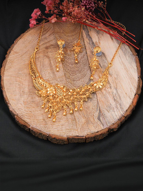 Mameraa Women Gold-Plated Lakshmi Temple Choker Necklace & Earrings