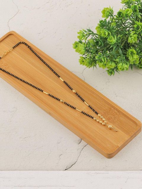 Gold-plated and black artificial stones and beads mangalsutra, secured with a s-hook