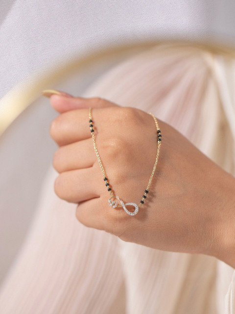 Mameraa Gold-Plated Cubic Zirconia Studded And Beaded Infinity Mangalsutra