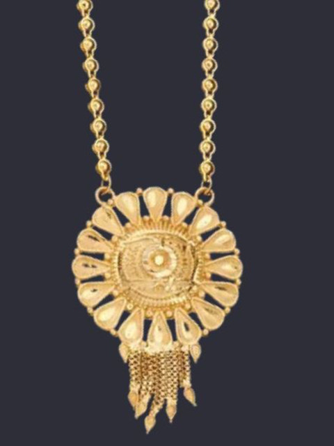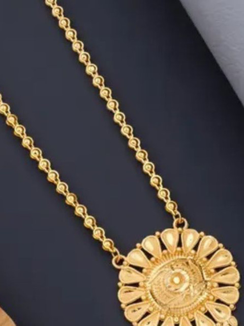 Mameraa Gold-Plated Cubic Zirconia Studded And Beaded Circular Mangalsutra