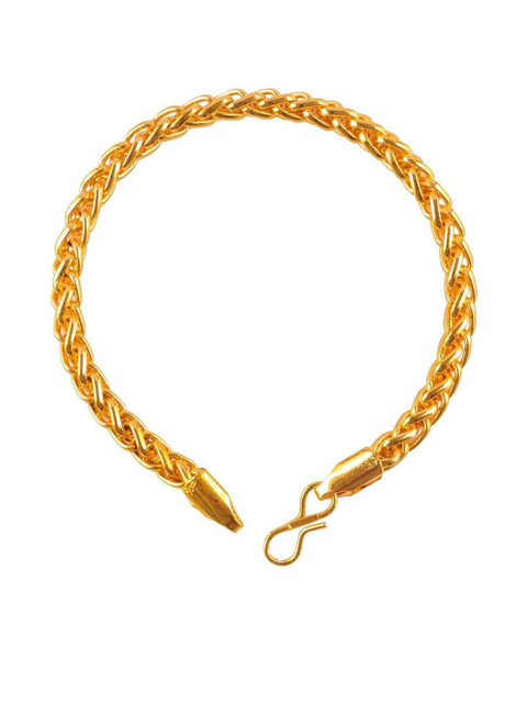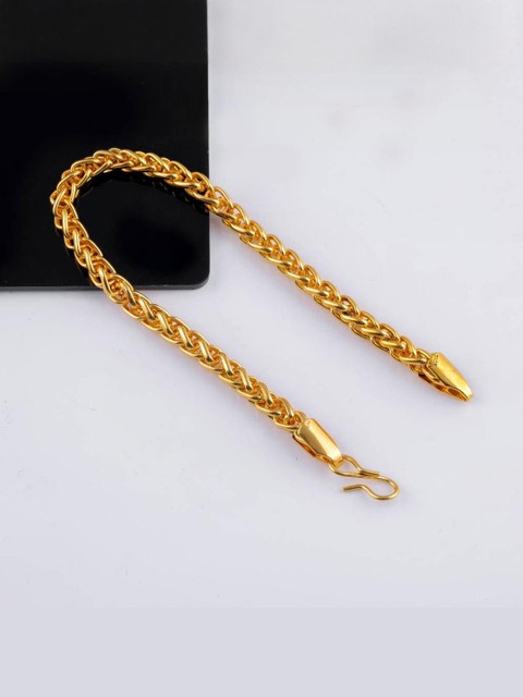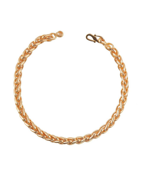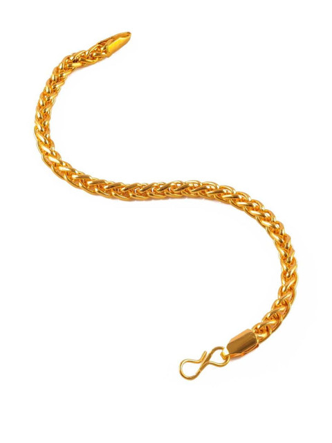 Timeless wheat chain design, rich gold tone, intricately woven links, comfortable and flexible fit, secure clasp, versatile for casual and formal wear, understated elegance.