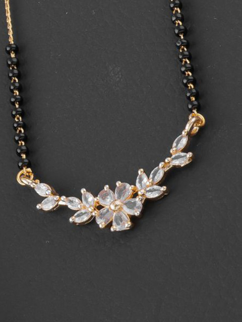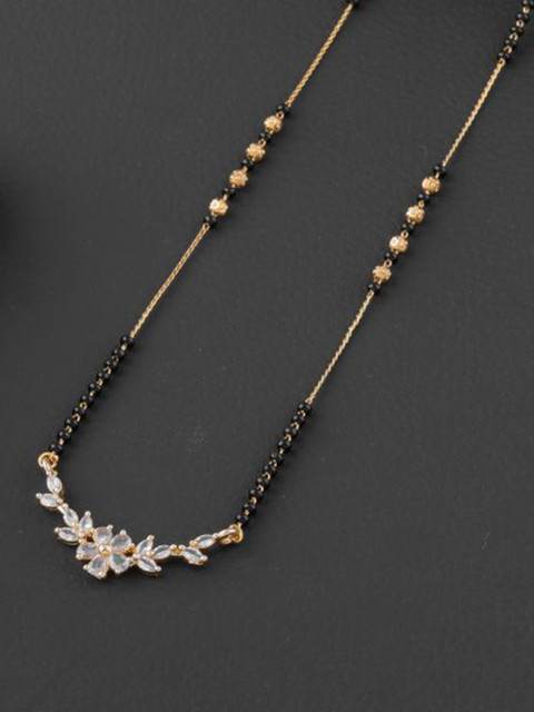 Mameraa Gold-Plated CZ Studded & Beaded Floral Mangalsutra