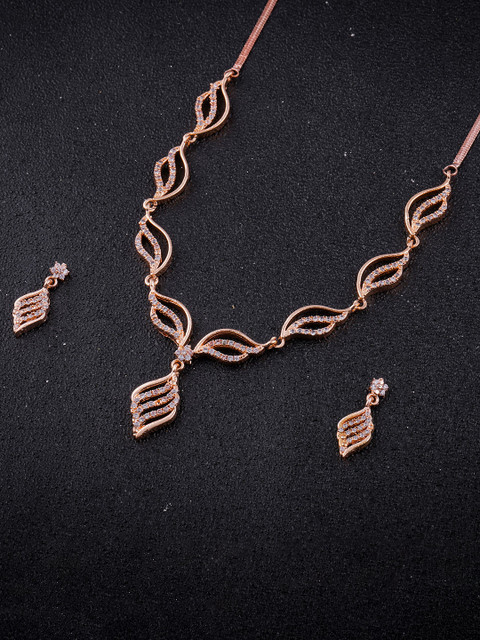 Mameraa Gold Plated American Diamond Studded Minimal Necklace