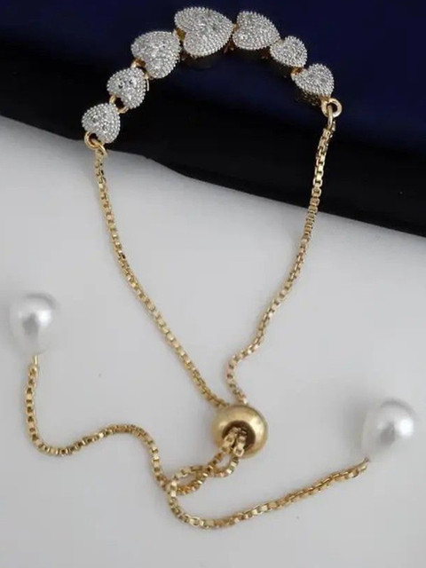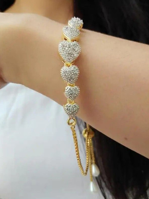 Mameraa Gold-Plated Sparkling Heart Cubic Zirconia Studded Link Bracelet