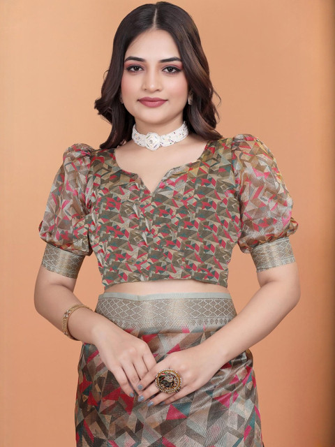 The blouse worn by the model might be for modelling purpose only. Check the image of the blouse piece to understand how the actual blouse piece looks like.