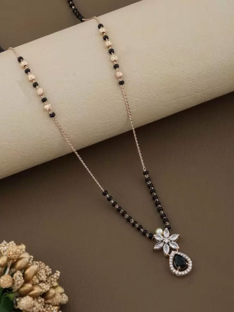 Rose Gold-plated, white and black mangalsutra, has cz studded and beaded details