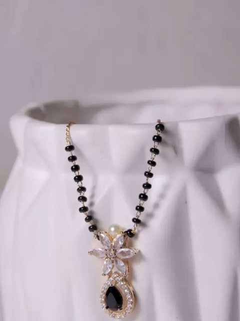 Be the first to review “Mameraa Rose Gold-Plated CZ Studded And Beaded Floral Mangalsutra”
