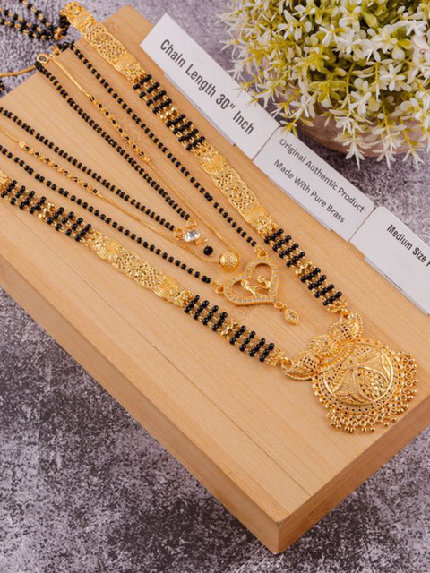 Be the first to review “Mameraa Set of 4 Gold-Plated Stones Studded and Beaded Long & Short Mangalsutras”