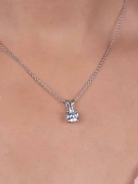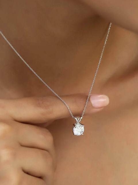 Mameraa Silver Plated Cubic Zirconia Studded Circular Shaped Pendant With Chain