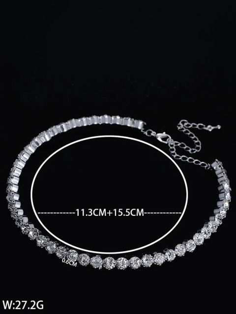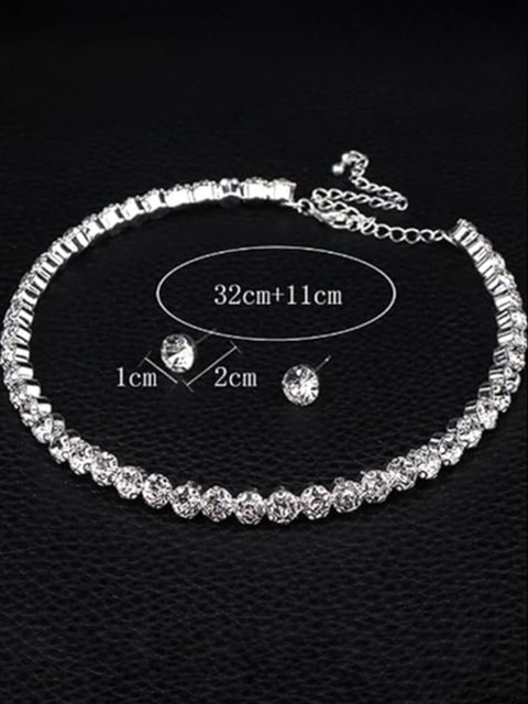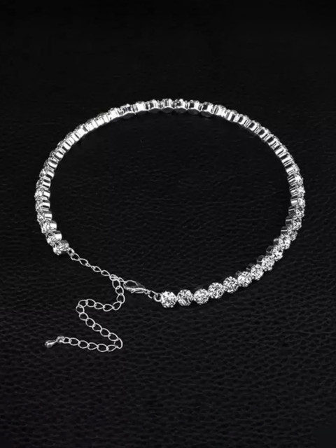 Mameraa Silver-Toned & White AD Handcrafted Rhodium Choker Necklace