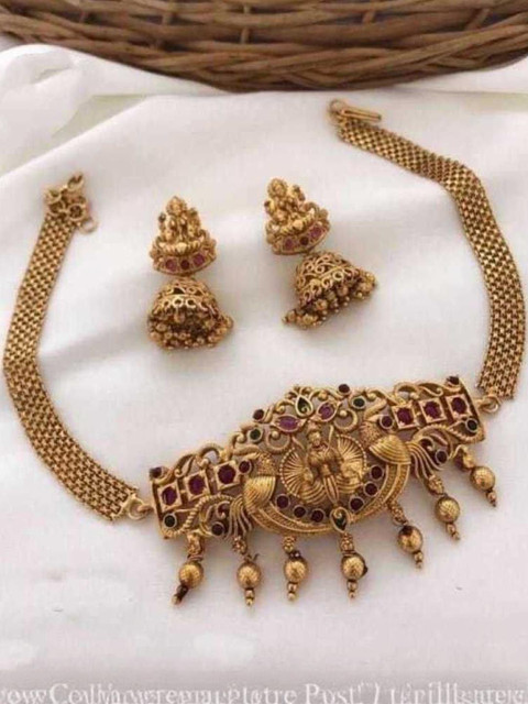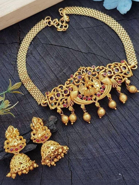 Mameraa South Indian Temple Gold-Plated Choker Necklace