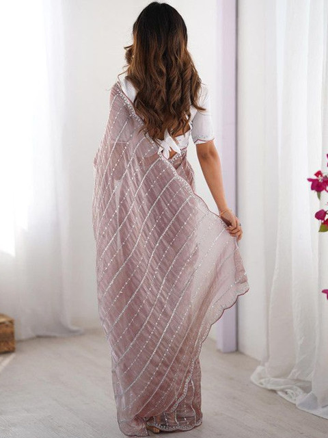 The blouse worn by the model might be for modelling purpose only. Check the image of the blouse piece to understand how the actual blouse piece looks like.