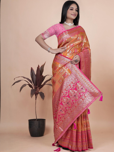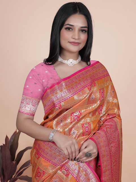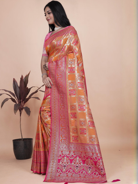Mameraa Ethnic Motifs Woven Design Zari Banarasi Saree