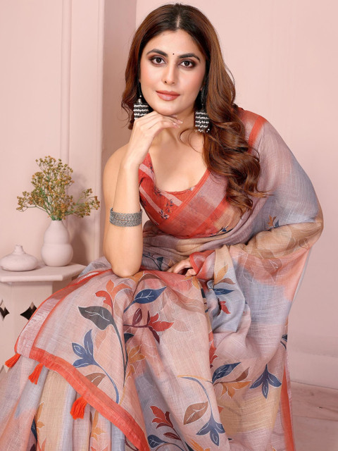 Mameraa Women Floral Printed Zari Saree