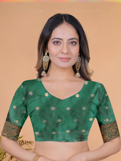 The blouse worn by the model might be for modelling purpose only. Check the image of the blouse piece to understand how the actual blouse piece looks like.