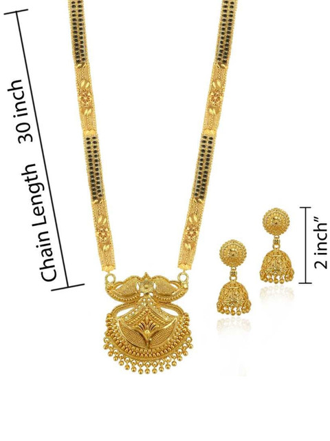 Mameraa Women Gold-Plated Stone-Studded Mangalsutra With Earrings