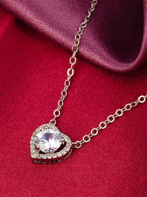 Mameraa Women Silver Plated Artificial Stones Pendant Necklace with S-Hook Closure