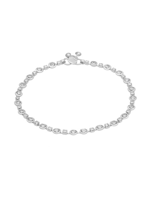 Mameraa Women Silver-Toned CZ Stone Minimalist Anklet