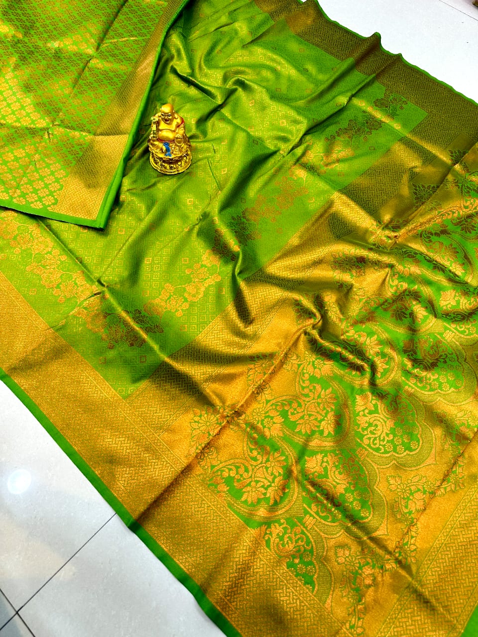 Alluring Green Kanjivaram Silk with Rich Blue Blouse Piece