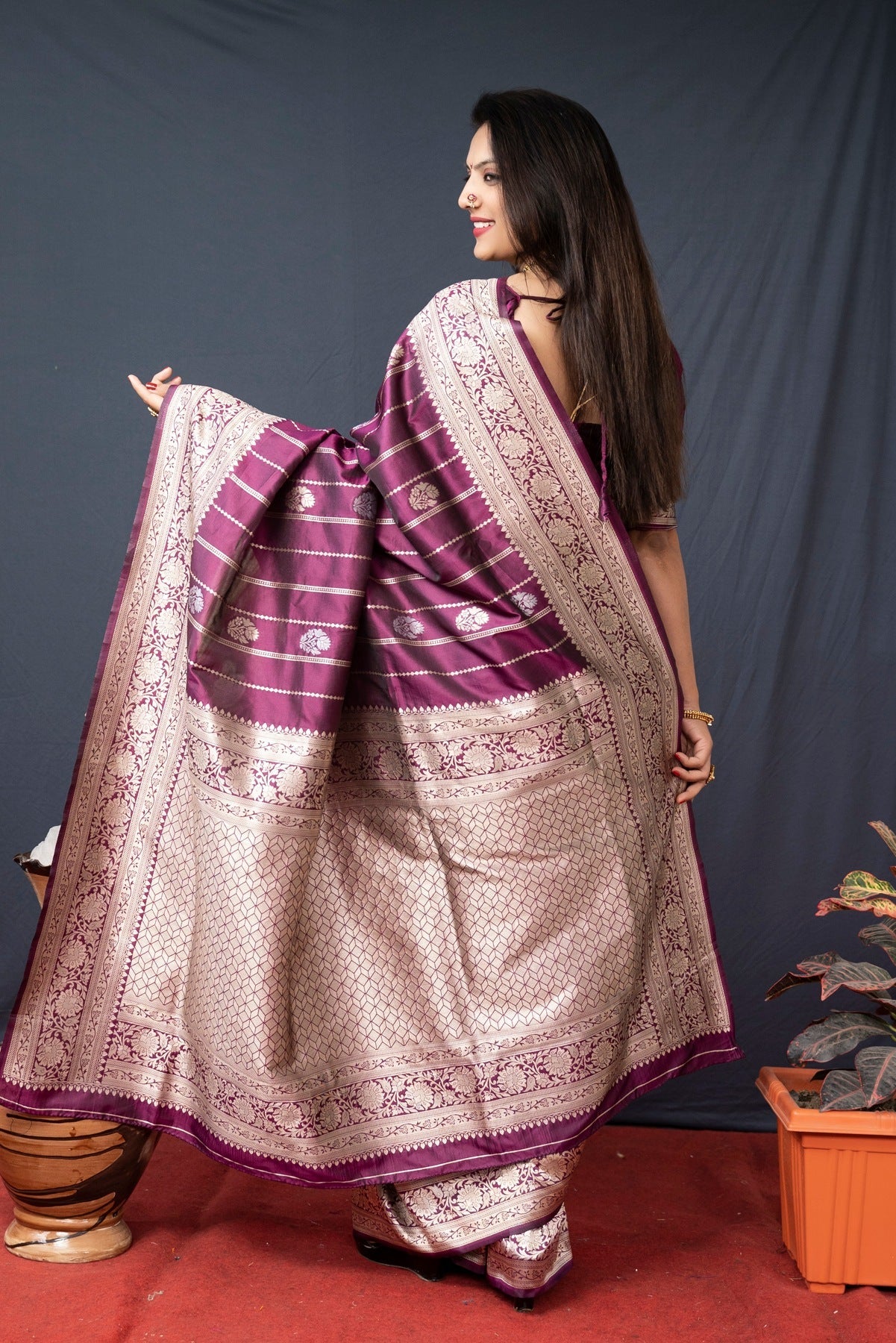 India is a home of various silks, and banarasi is one amongst them, the luxurious feel banarasi provide is immense. the weaving technique make it different, pair this classic peice with some statment accessories and feel the grand look the next moment!