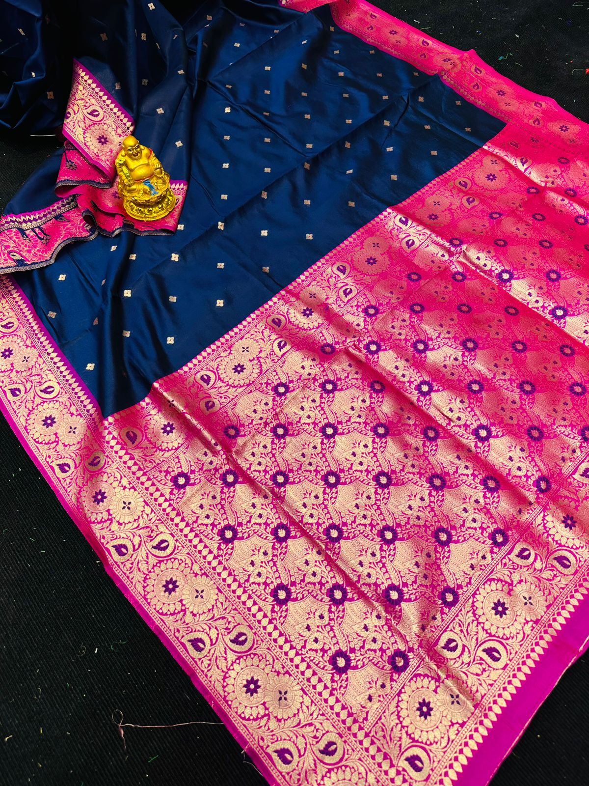 Elevate your style with the exquisite Pure Banarasi Silk. This fabric is a masterpiece in every sense, embodying luxury and elegance. Its intricate weaving and subtle shimmer create a graceful drape that exudes a majestic aura. The Royal look of Pure Banarasi Silk will make you stand out in any occasion, be it weddings, parties or corporate events.