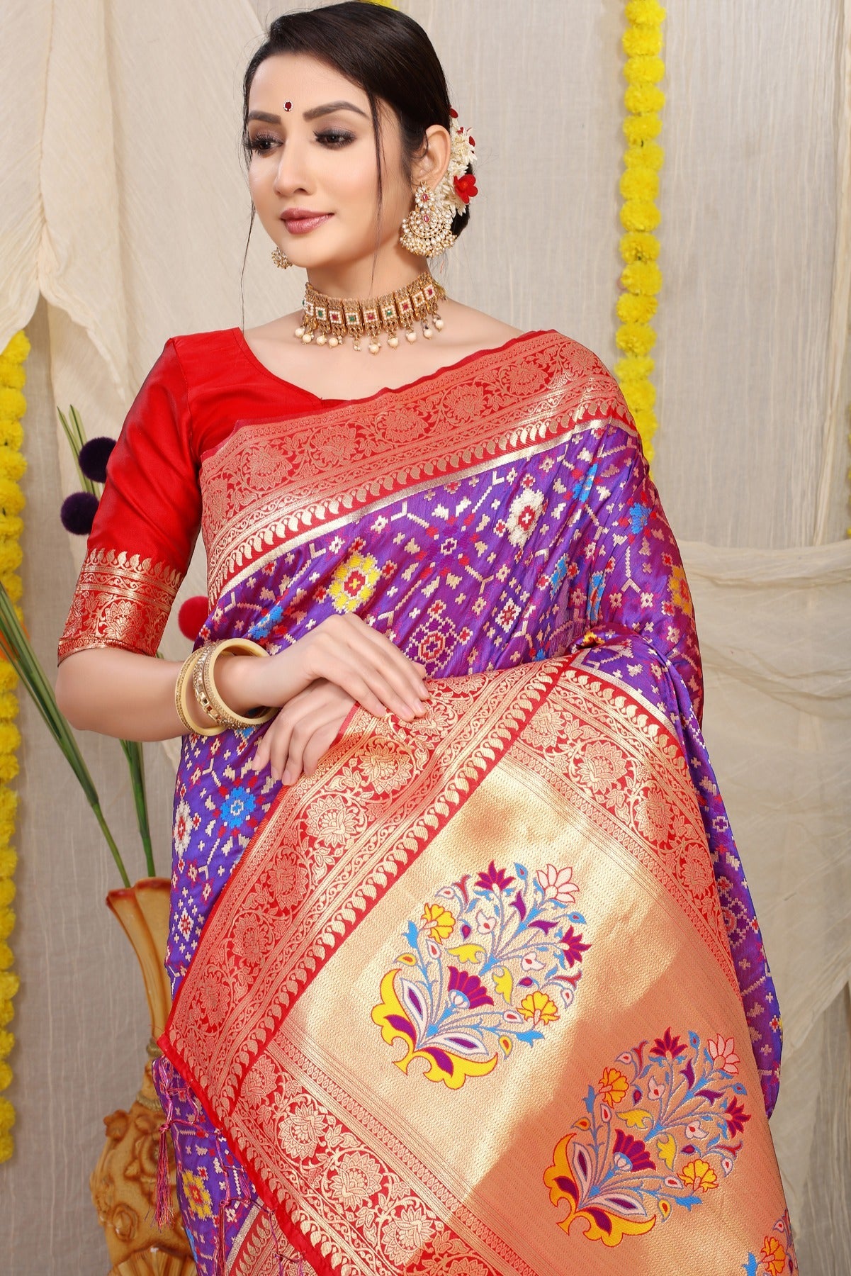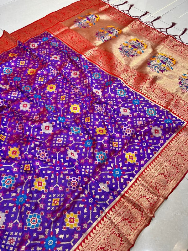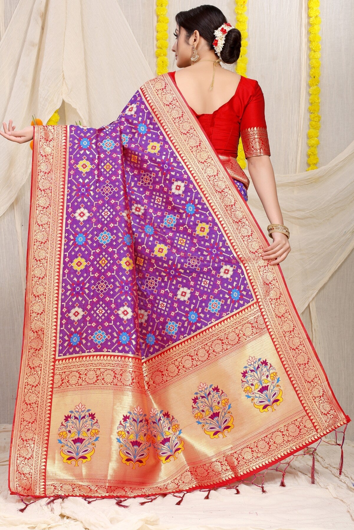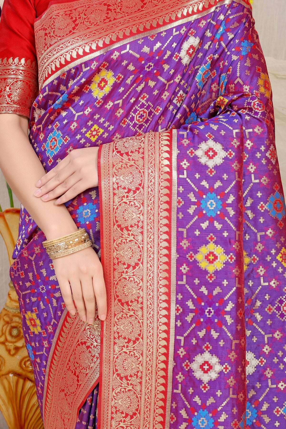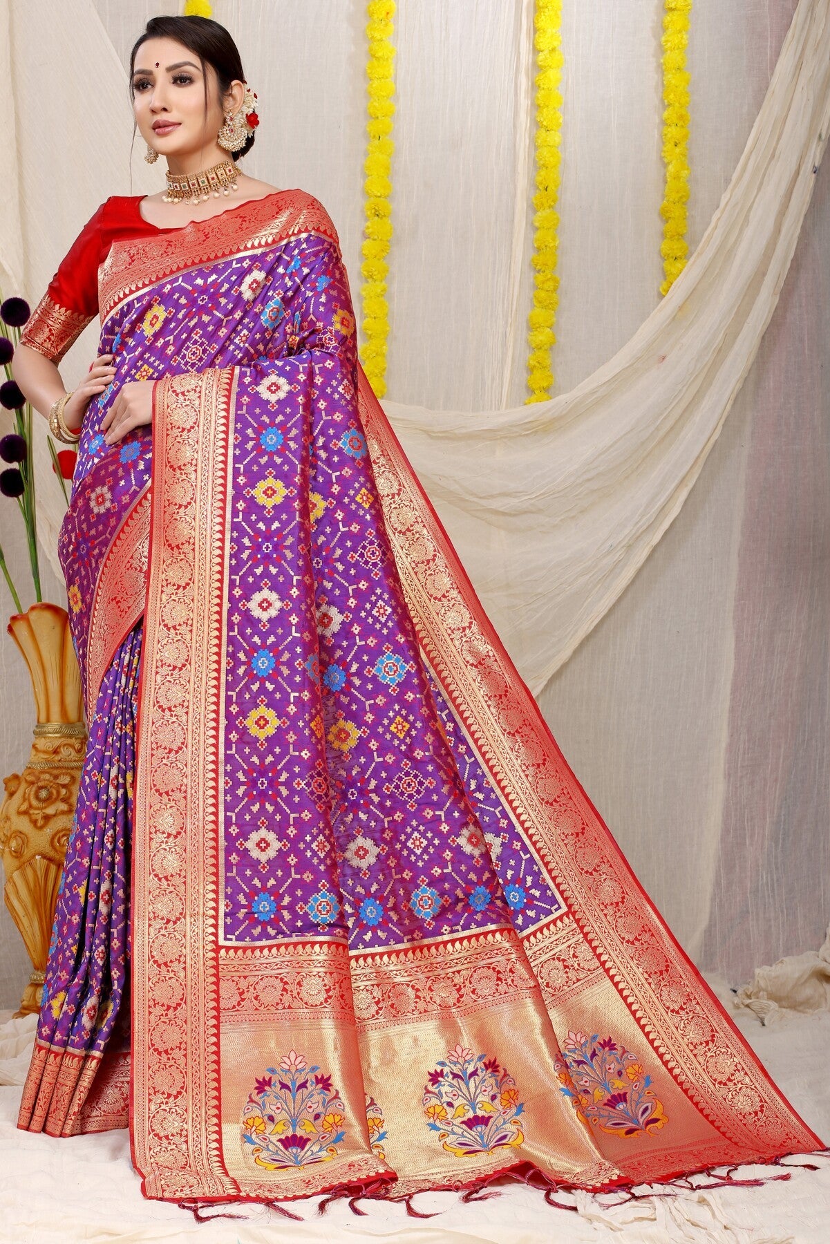 Beautiful Purple Soft Patola Silk Saree with Demanding Blouse Piece