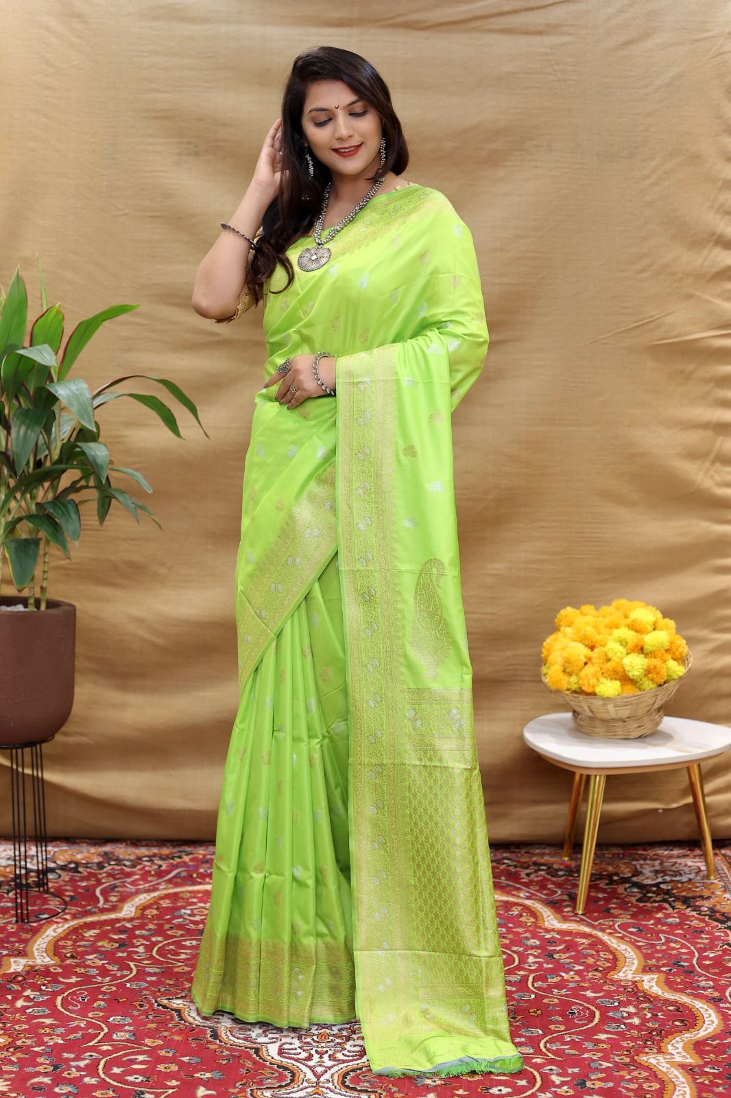 Blissful Parrot Soft Banarasi Silk Saree With Angelic Blouse Piece