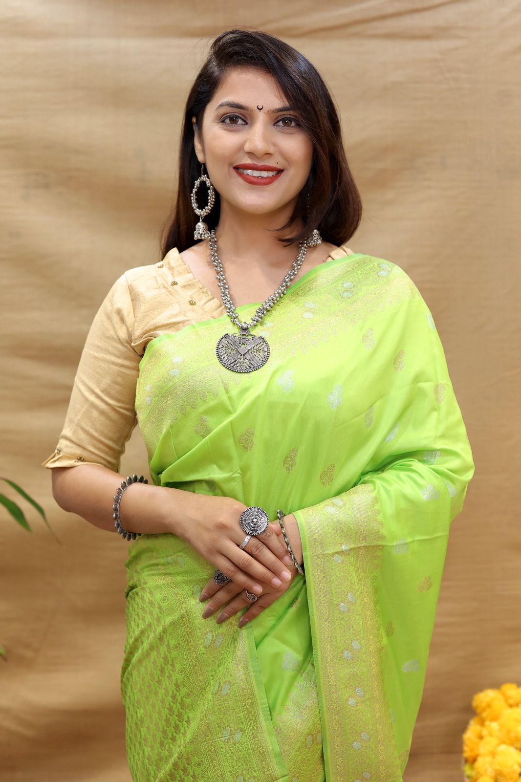 Elevate your traditional wardrobe with this irresistible Soft Banarasi Silk Saree! The softness of pure silk combined with the allure of Banarasi weave is a match made in heaven. Draping this saree feels like wearing a piece of art, as the intricate motifs and delicate zari work come to life. Whether it's a family gathering or a festive celebration, this saree will enhance your grace and bring out the diva in you.