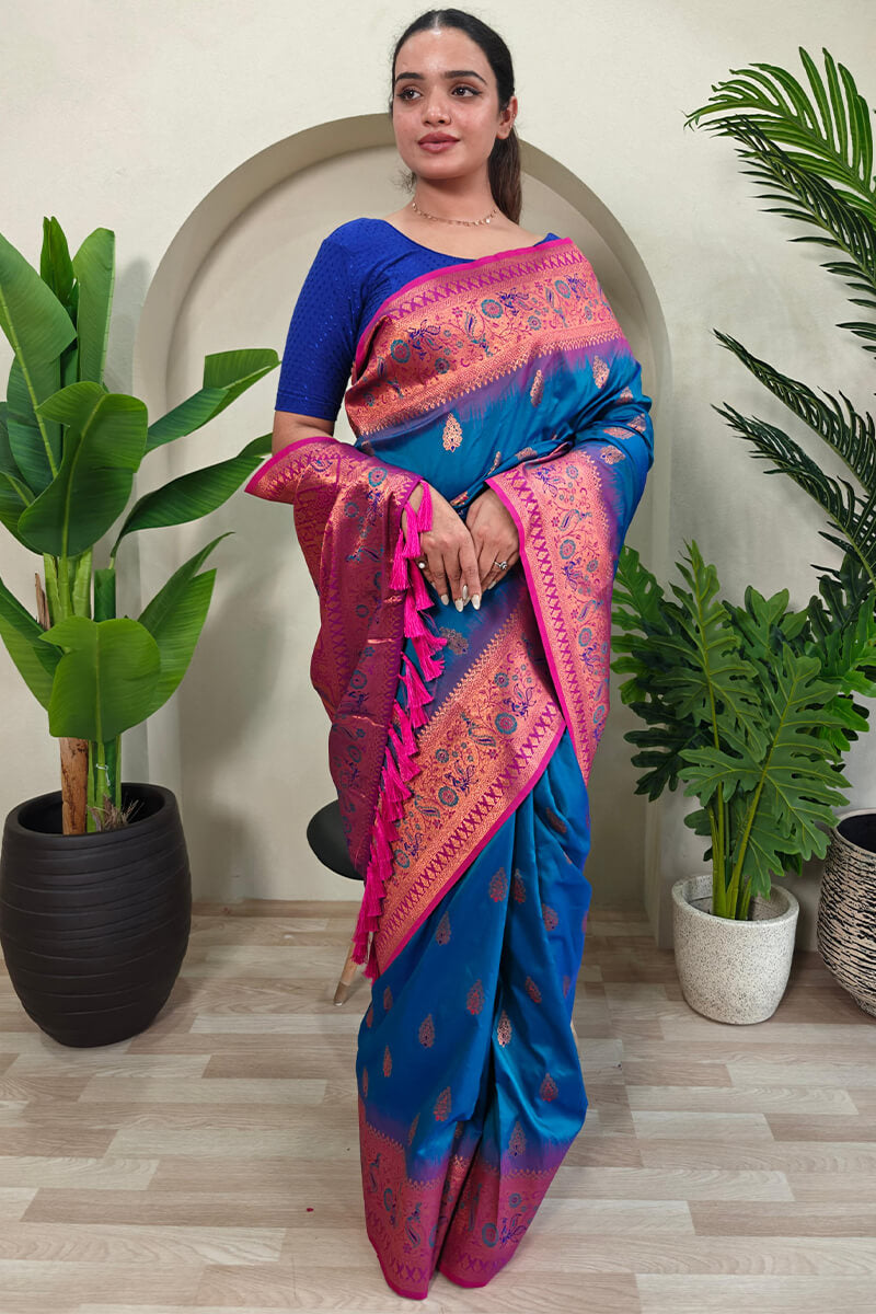Elevate your ethnic look with the Soft Banarasi Silk Saree. The intricate weaving and soft texture of the silk fabric make this saree a must-have for every fashion enthusiast. Pair it with your favorite jewelry and accessories to complete your traditional ensemble.