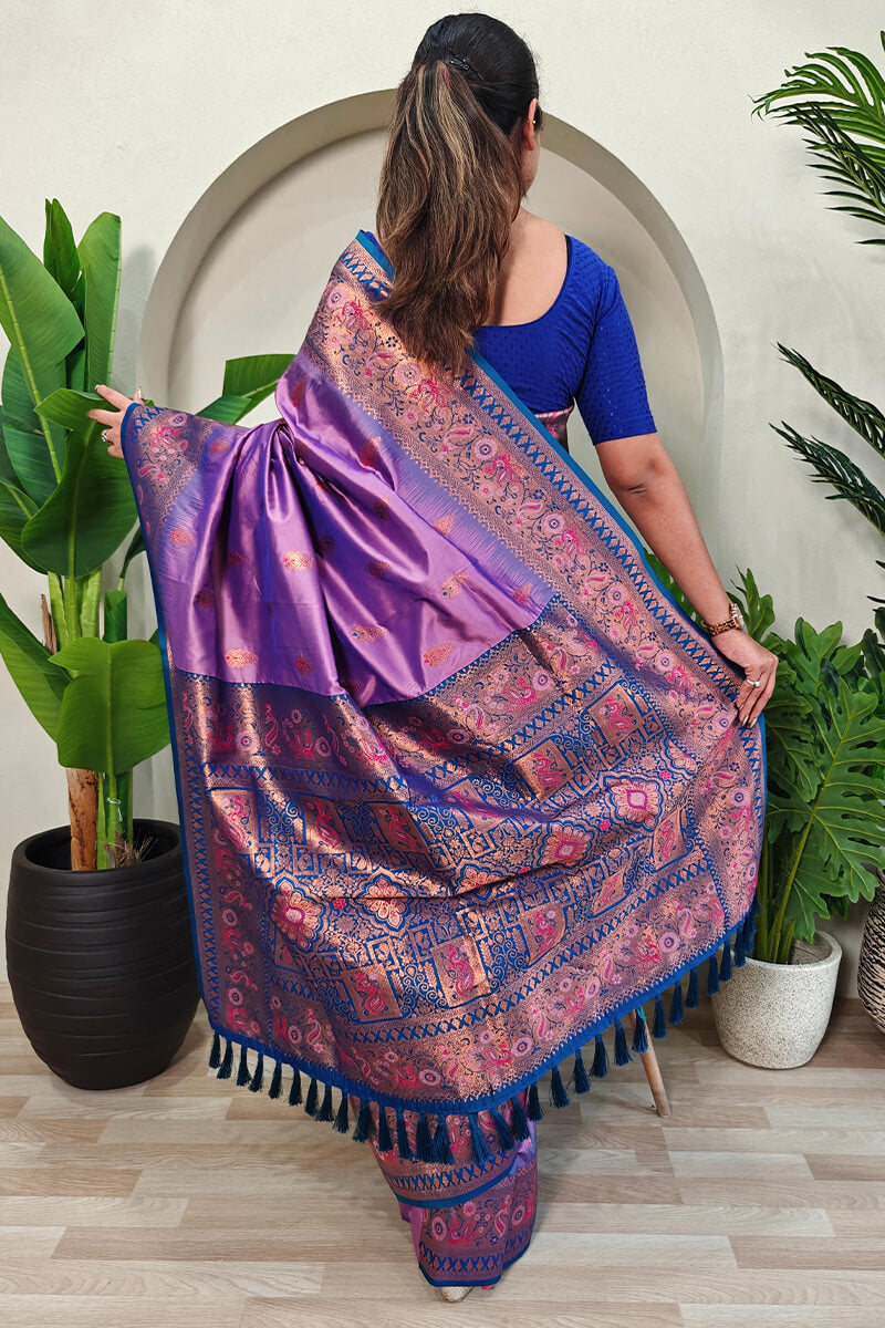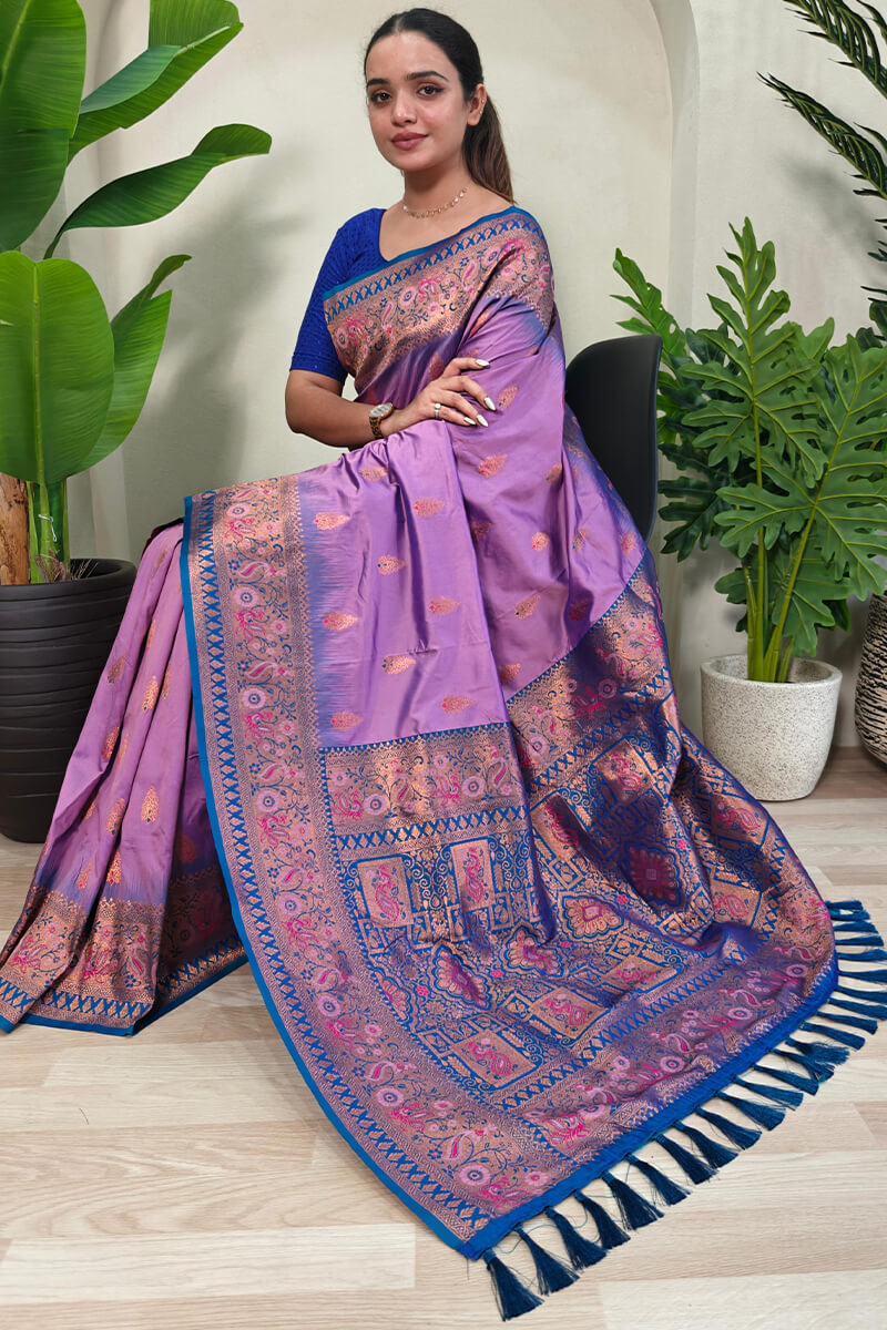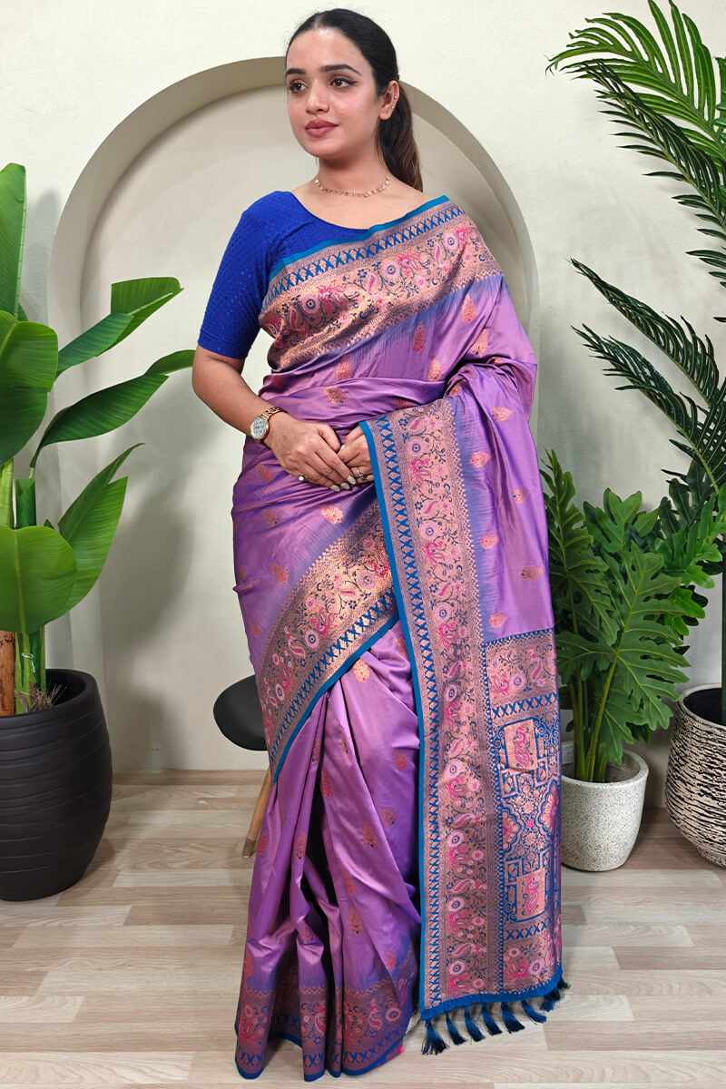 Chatoyant Lavender Soft Banarasi Silk Saree With Resonant Blouse Piece