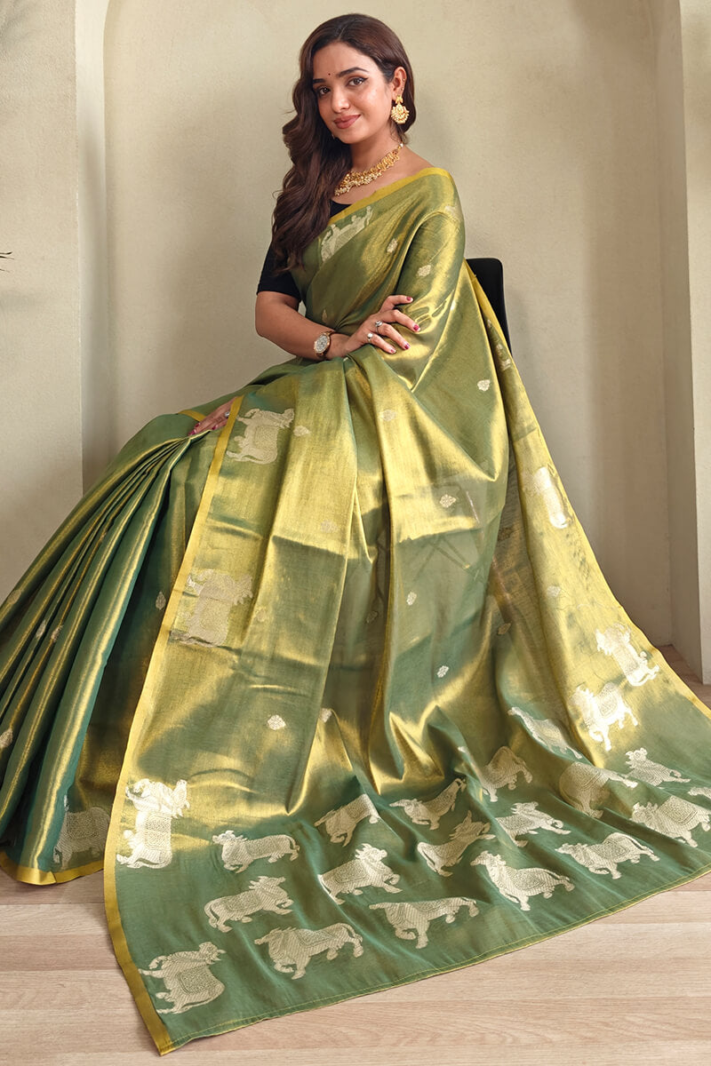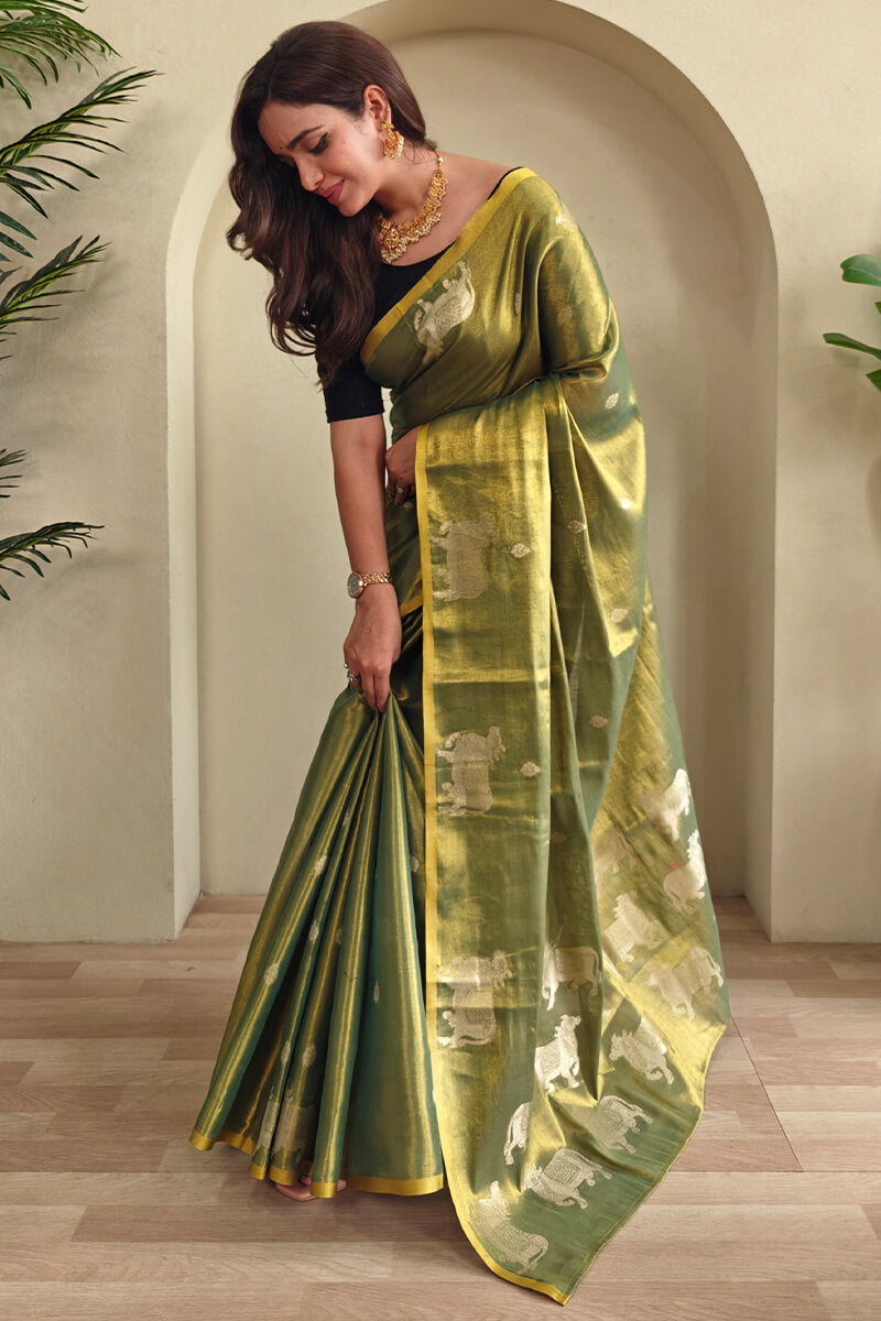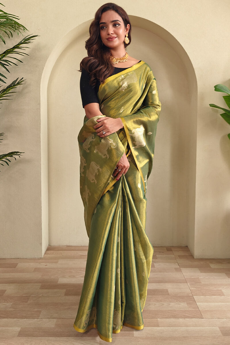 Elevate your ethnic wardrobe with our exquisite Soft Banarasi Tissue Silk Saree. Crafted with delicate threads of silk and intricately woven patterns, this saree exudes a timeless charm. Perfect for special occasions, this luxurious piece will make you stand out with its elegant drape and rich texture.