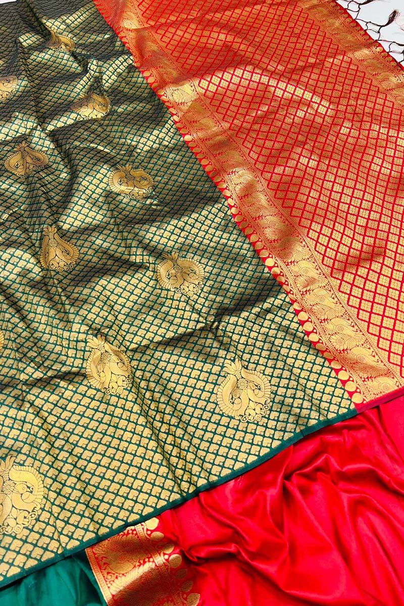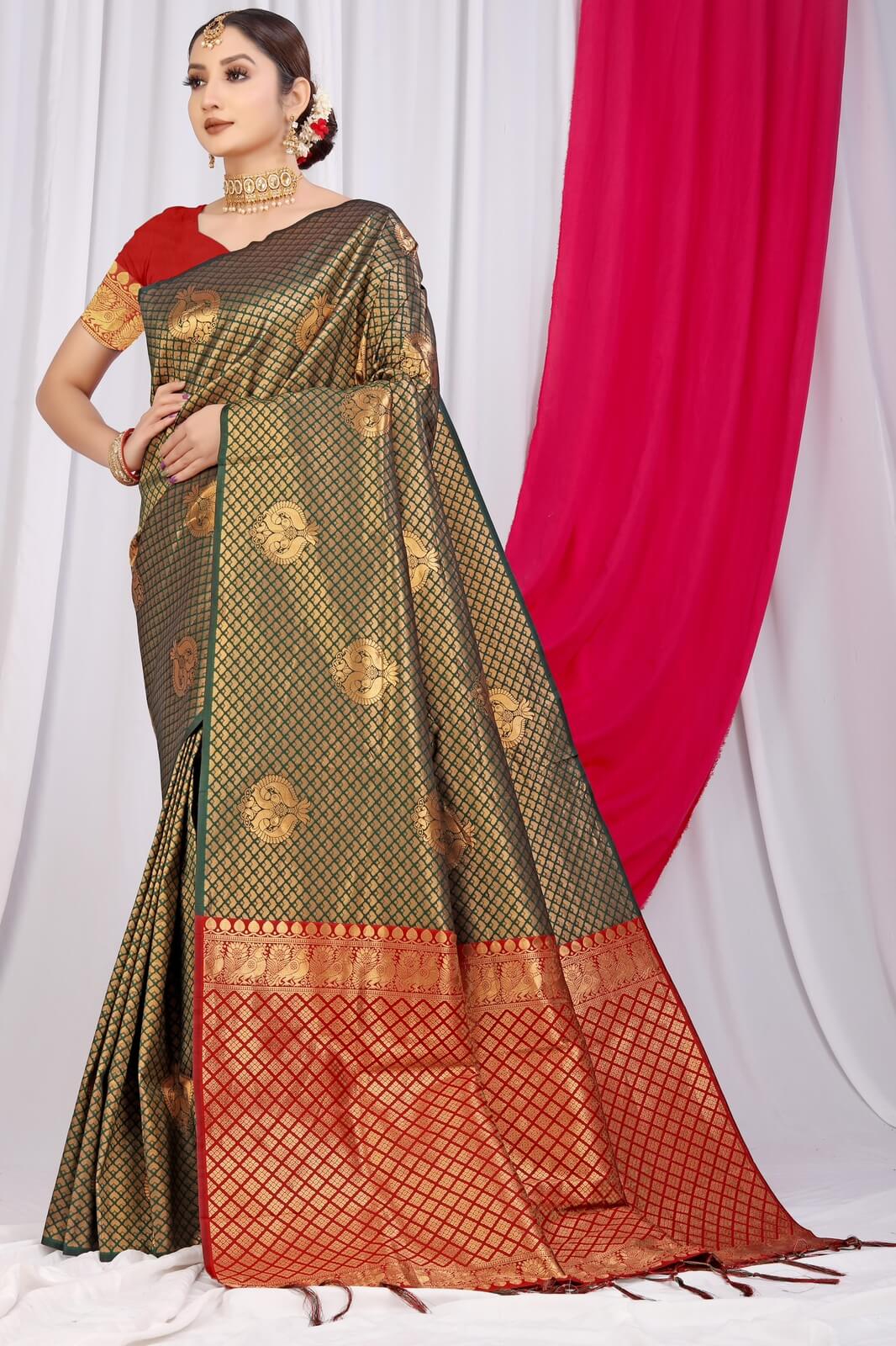 Classy Dark Green Soft Silk Saree With Incredible Blouse Piece
