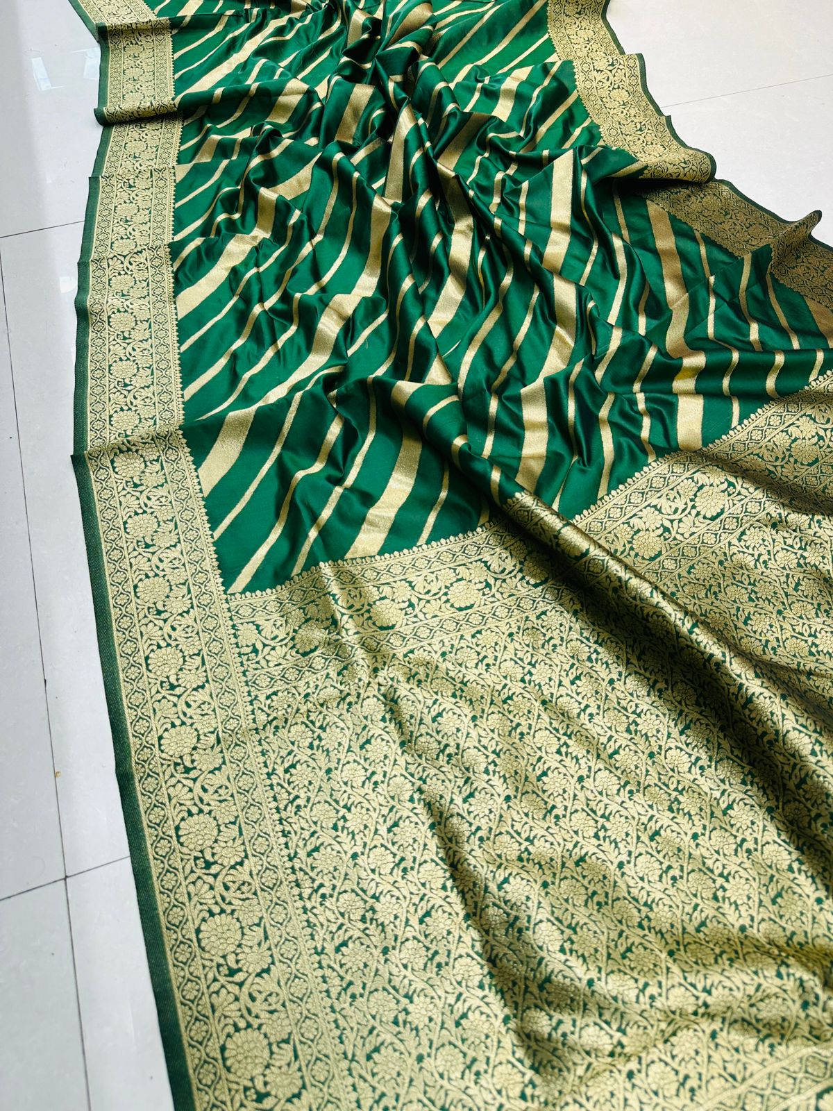 Comely Green Banarasi Silk Saree With Excellent Blouse Piece