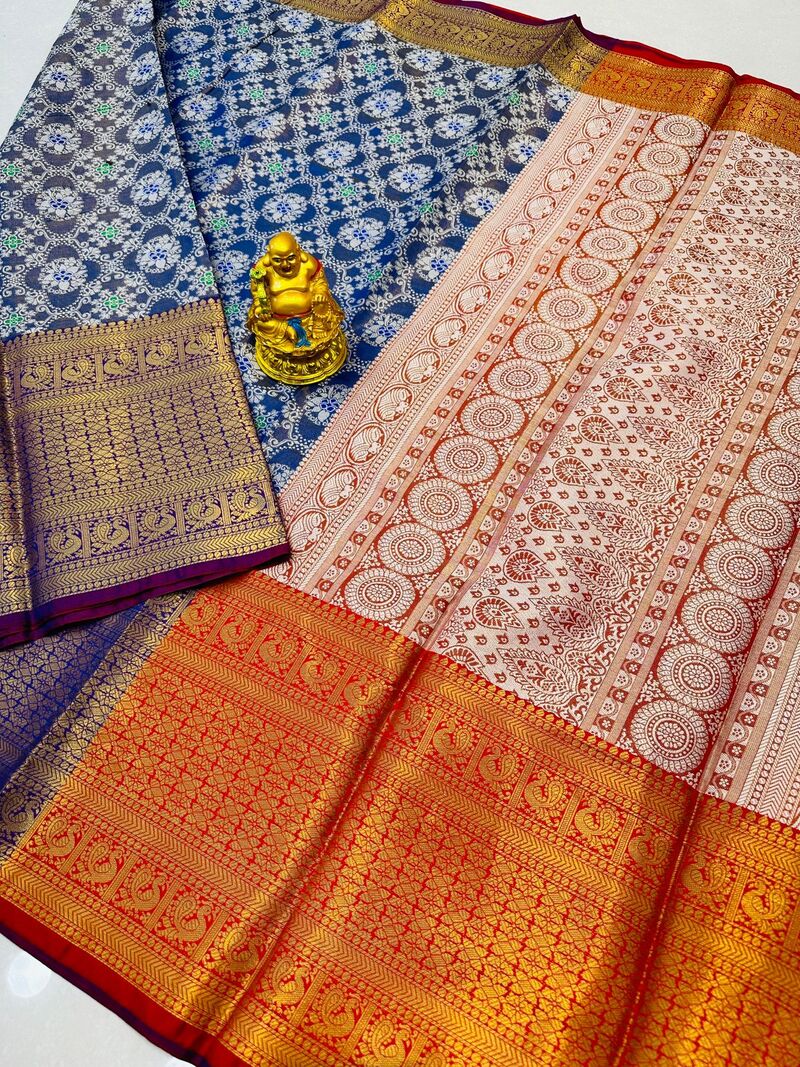 Conflate Blue Kanjivaram Silk and Angelic Blouse Piece