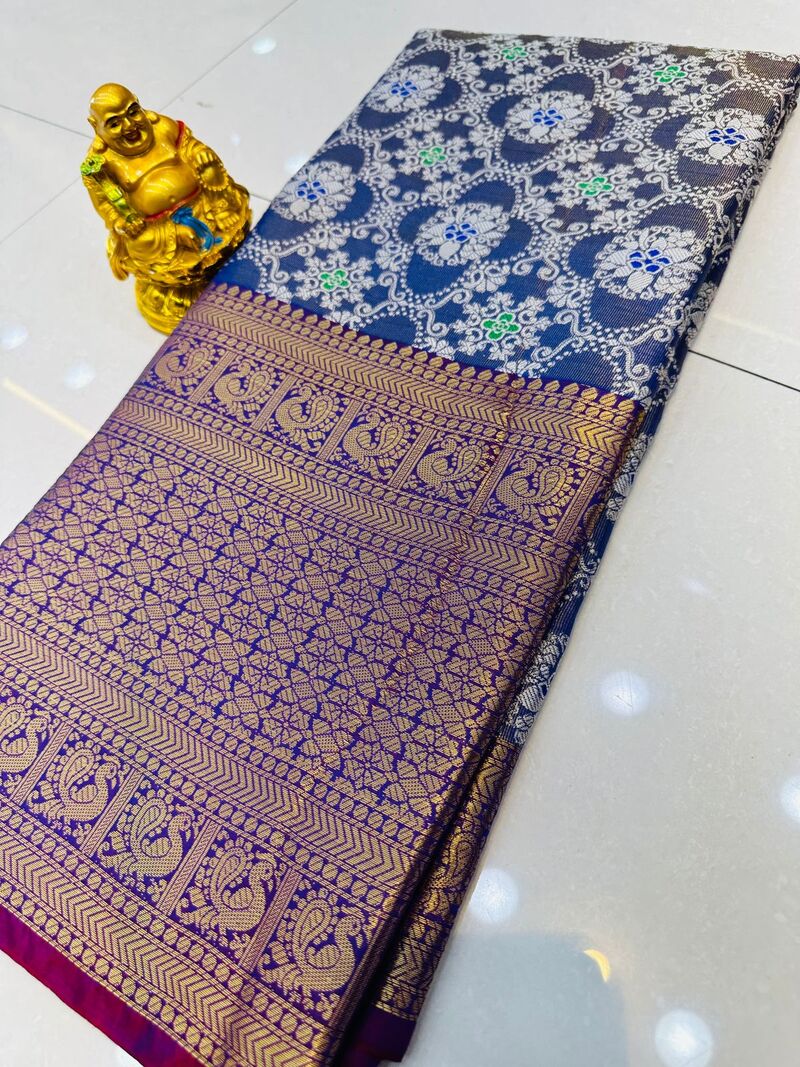 Highlight your style with the gorgeous Kanjivaram Silk. This remarkable piece is intricately crafted from the finest quality silk, with artistic zari work adding a touch of sophistication. Rich colours and soft texture come together in the perfect harmony to create a garment that exudes elegance and luxury. Treat yourself to an unforgettable experience with this remarkable saree.